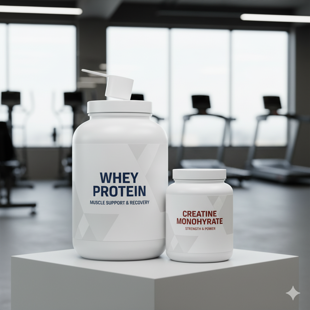 Una vez que tengas tu dieta y entrenamiento bajo control, hay un par de suplementos que suelen ser los más recomendados para quienes recién empiezan, por su eficacia comprobada y su seguridad: