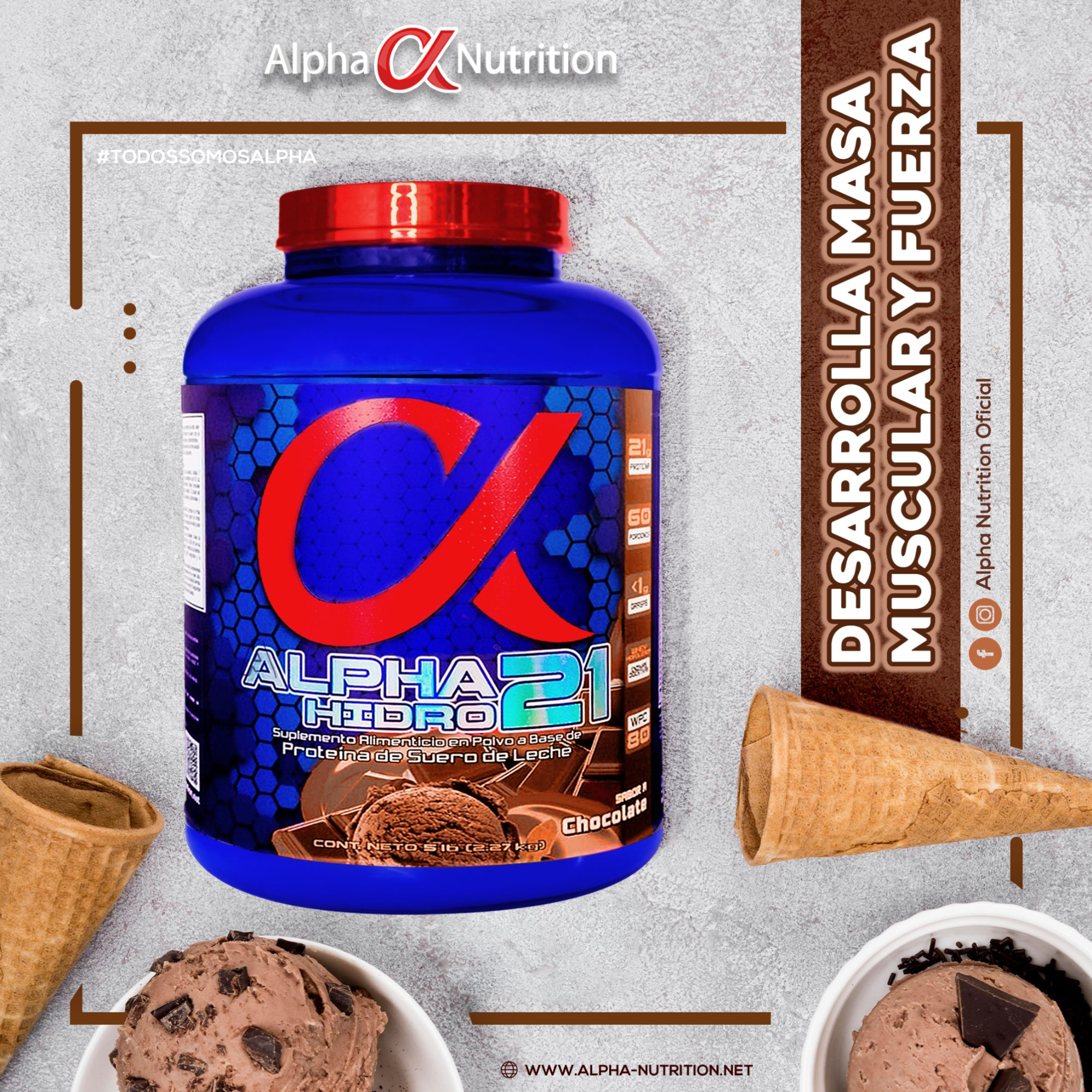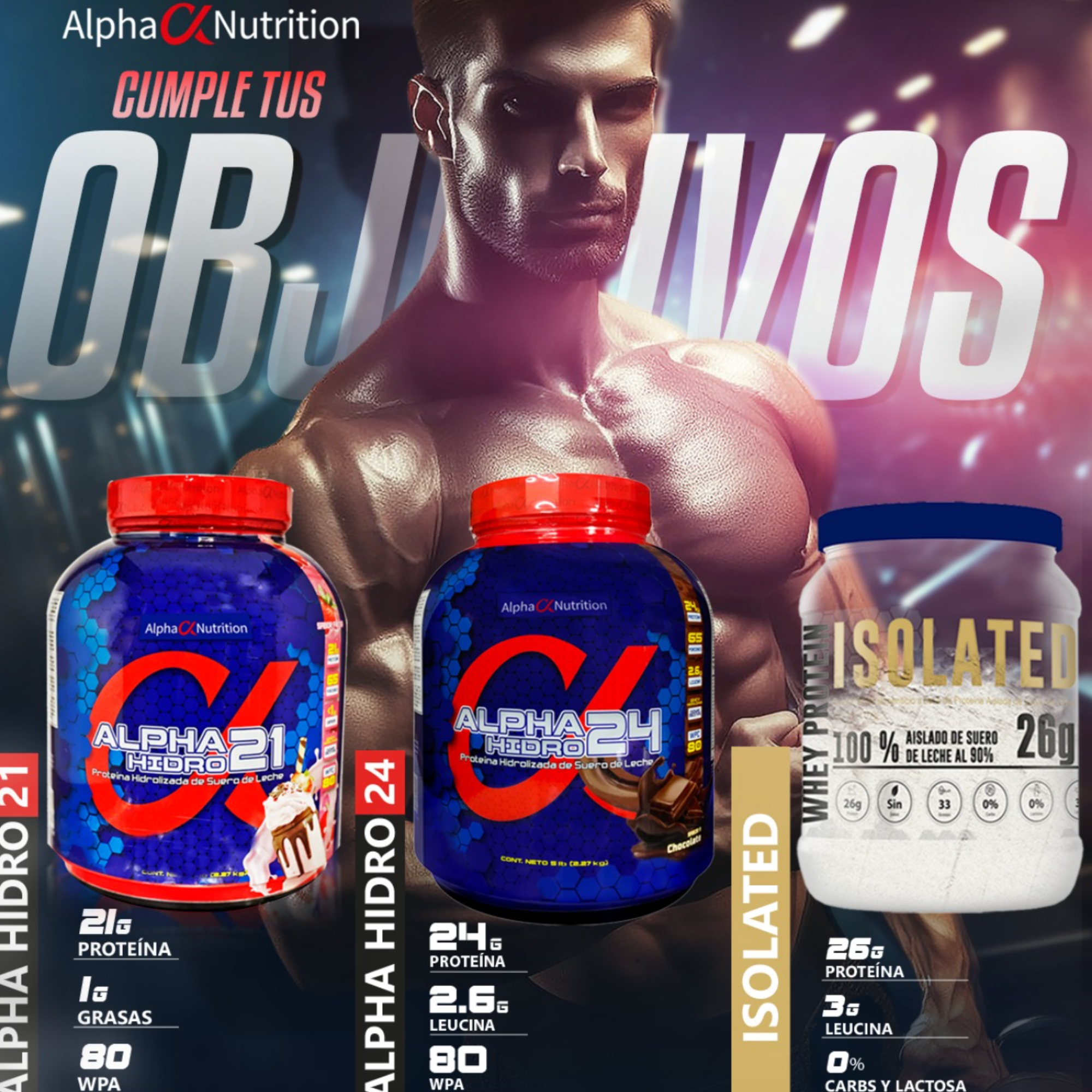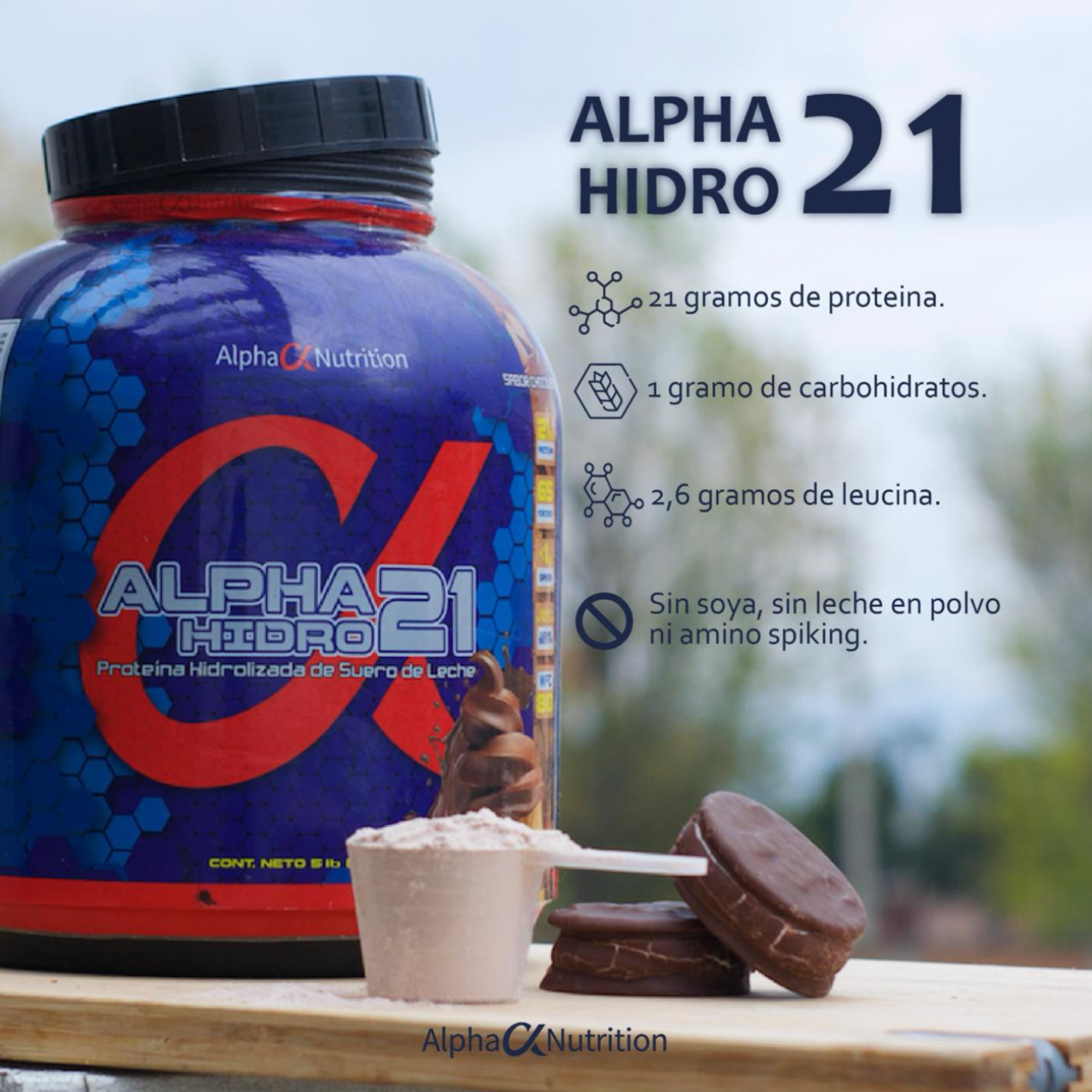 Puede ser una imagen de texto que dice "HIDRO ALPHA 21 Alpha Nutrition 21 gramos de proteina. 1gramo de carbohidratos. gramos de leucina. ALPHA21 HIDRO Prot Proteina Hidro zada de Suero de eche Sinsoya, sin leche en polvo amino spiking."