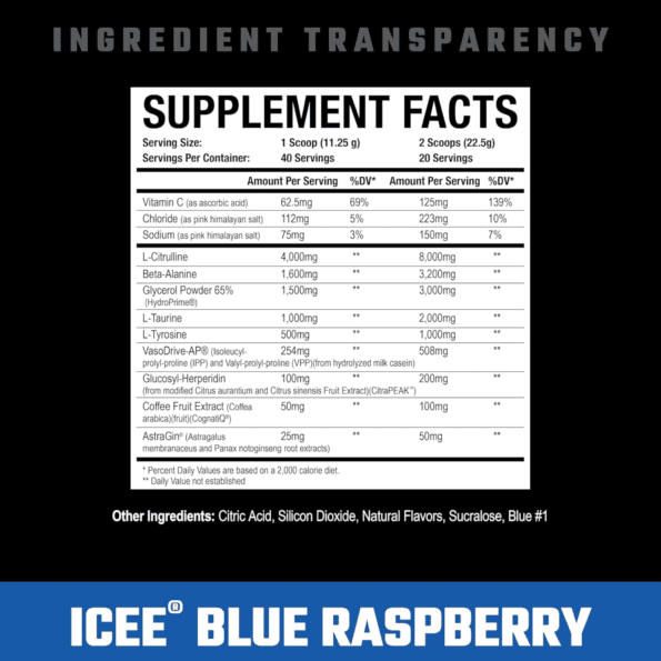Hydraulic V2 tiene dosis más altas de l-citrulina y beta-alanina, también cuenta con varios ingredientes de marca comercial nuevos, incluyendo vasodrive-ap®, citrapeak®, hydroprime®, cognatiq® y astragin®.