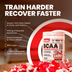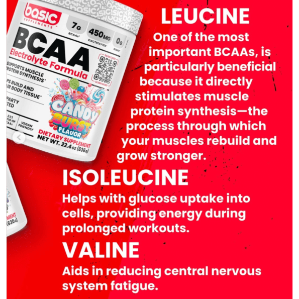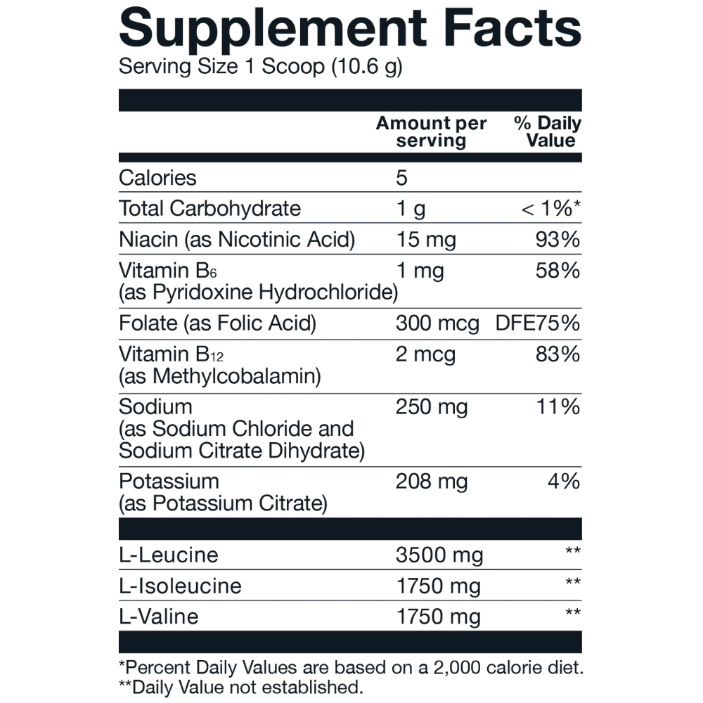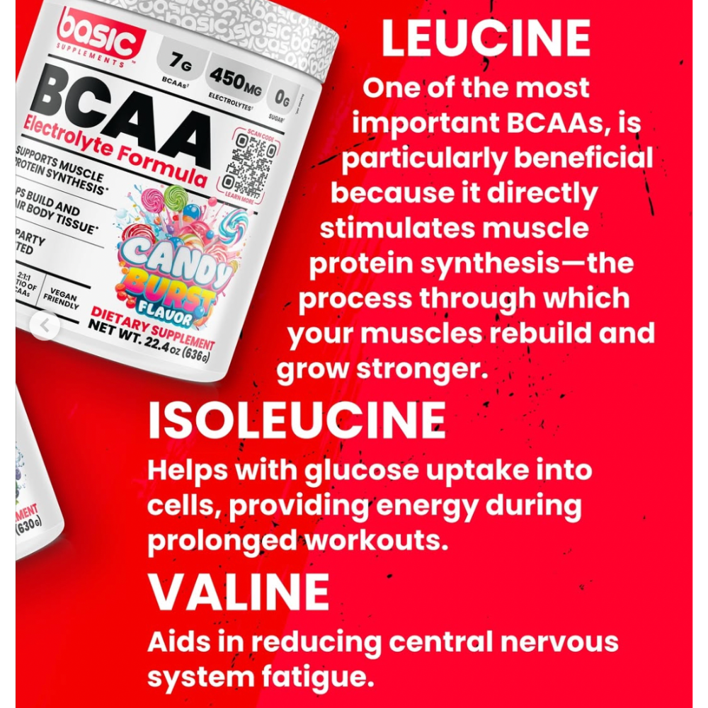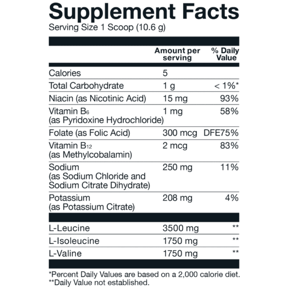 BCAA Básico contiene una proporción 2:1:1 de leucina, isoleucina y valina, tres aminoácidos esenciales de cadena ramificada. Este polvo instantáneo con sabor se mezcla fácilmente con agua u otras bebidas y es apto para consumir antes, durante o después de la actividad física.