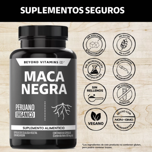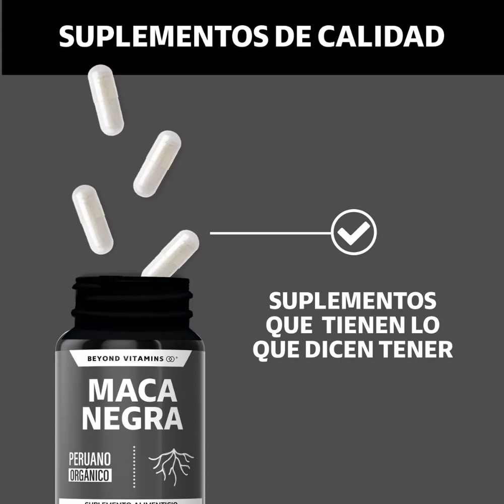Beyond Vitamins | Maca Negra Peruana Orgánica 1000 Mg – 60 Capsulas