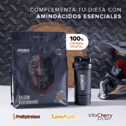 Falcon Performance es una proteína 100% vegetal con creatina, BCAAs, enzimas proteolíticas, extracto de cúrcuma y extracto de cereza, que te apoyará a alcanzar tus metas.