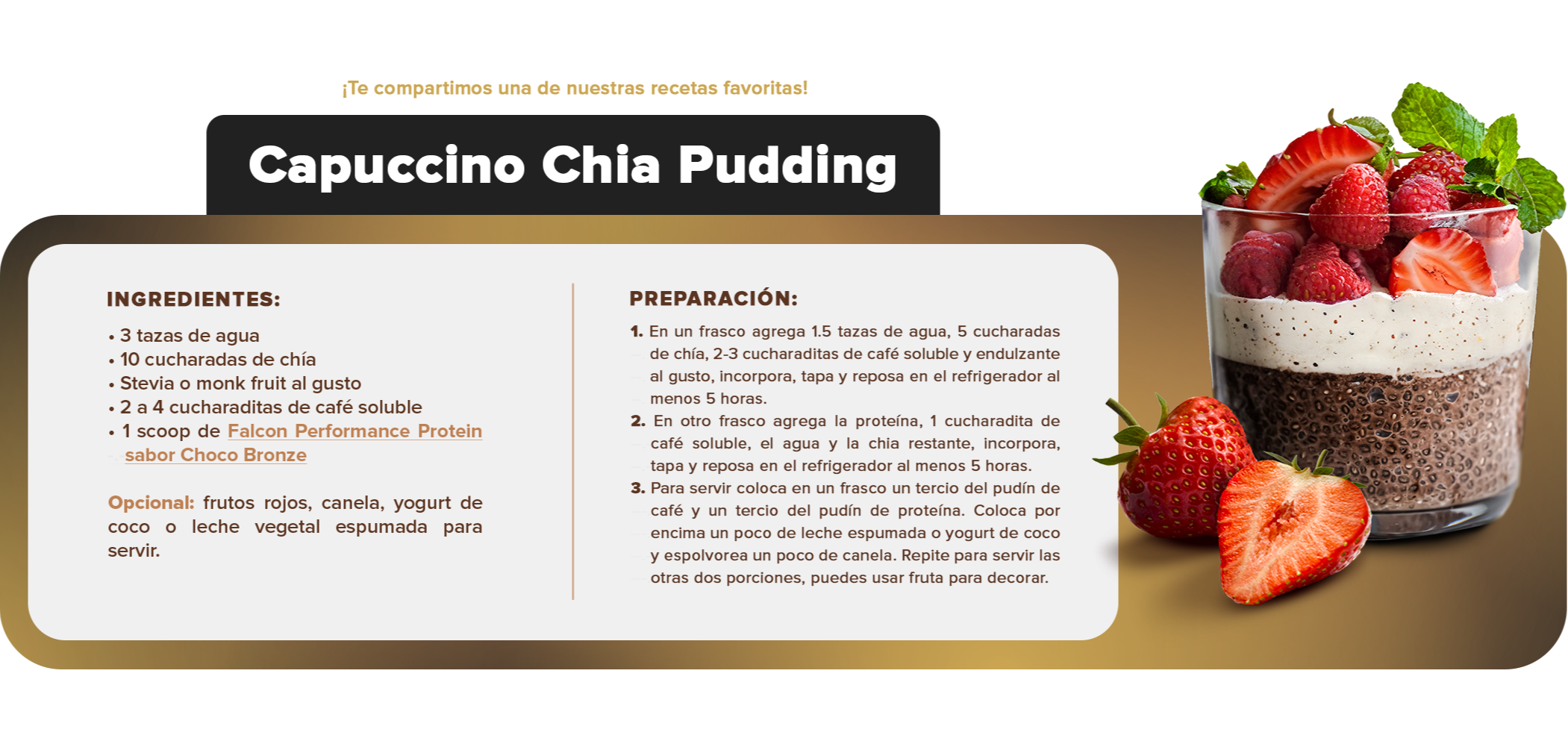 Falcon Performance está diseñada para apoyar tu ingesta de nutrientes diarios. Es libre de lácteos, gluten y soya, con enzimas que apoyan una mejor digestión.