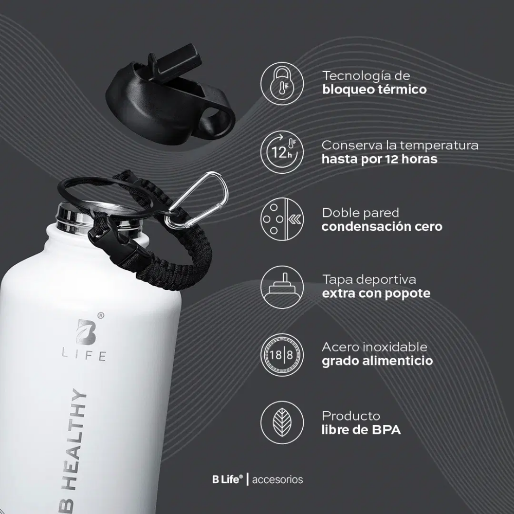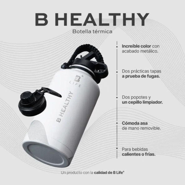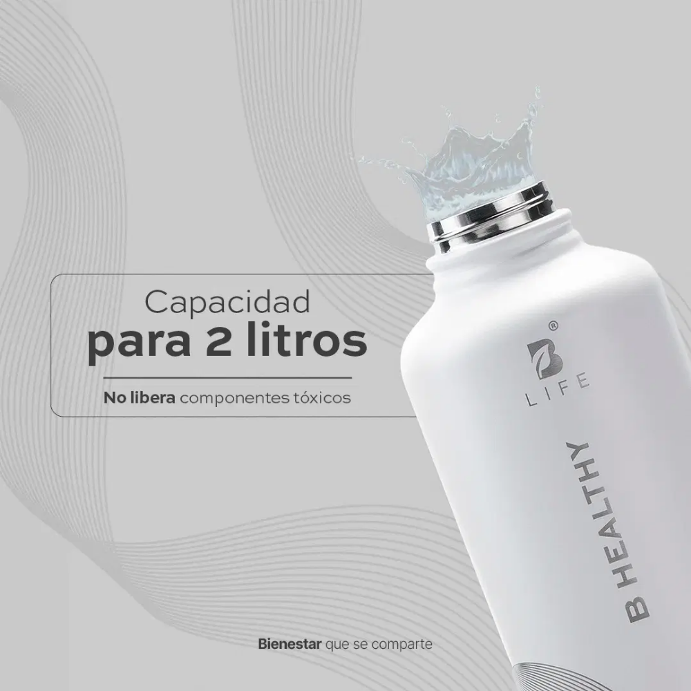 ¡Botella térmica B Healthy B Life®, para un estilo de vida activo! Nuestro termo de acero inoxidable de 2 L es ideal para bebidas frías y calientes, manteniendo su temperatura por hasta 12 horas.