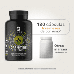 ¡Potencia tu energía con Carnitine Blend B Life®! Nuestra fórmula de Carnitina, enriquecida con Café Verde, Vinagre de Manzana, CLA, Paradoxina, Bioperine y Picolinato de Cromo, aporta valiosos compuestos que impulsan tu vitalidad, diferenciándose de otras presentaciones.