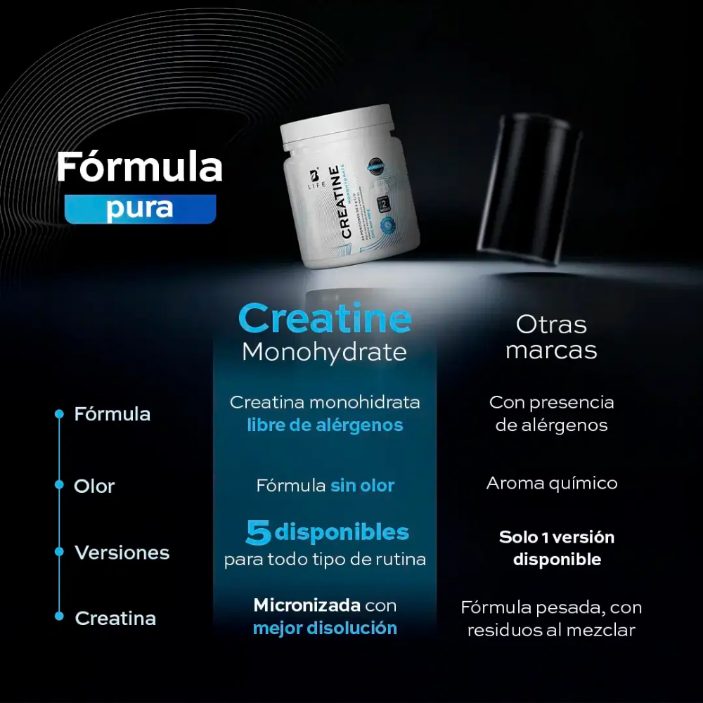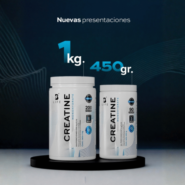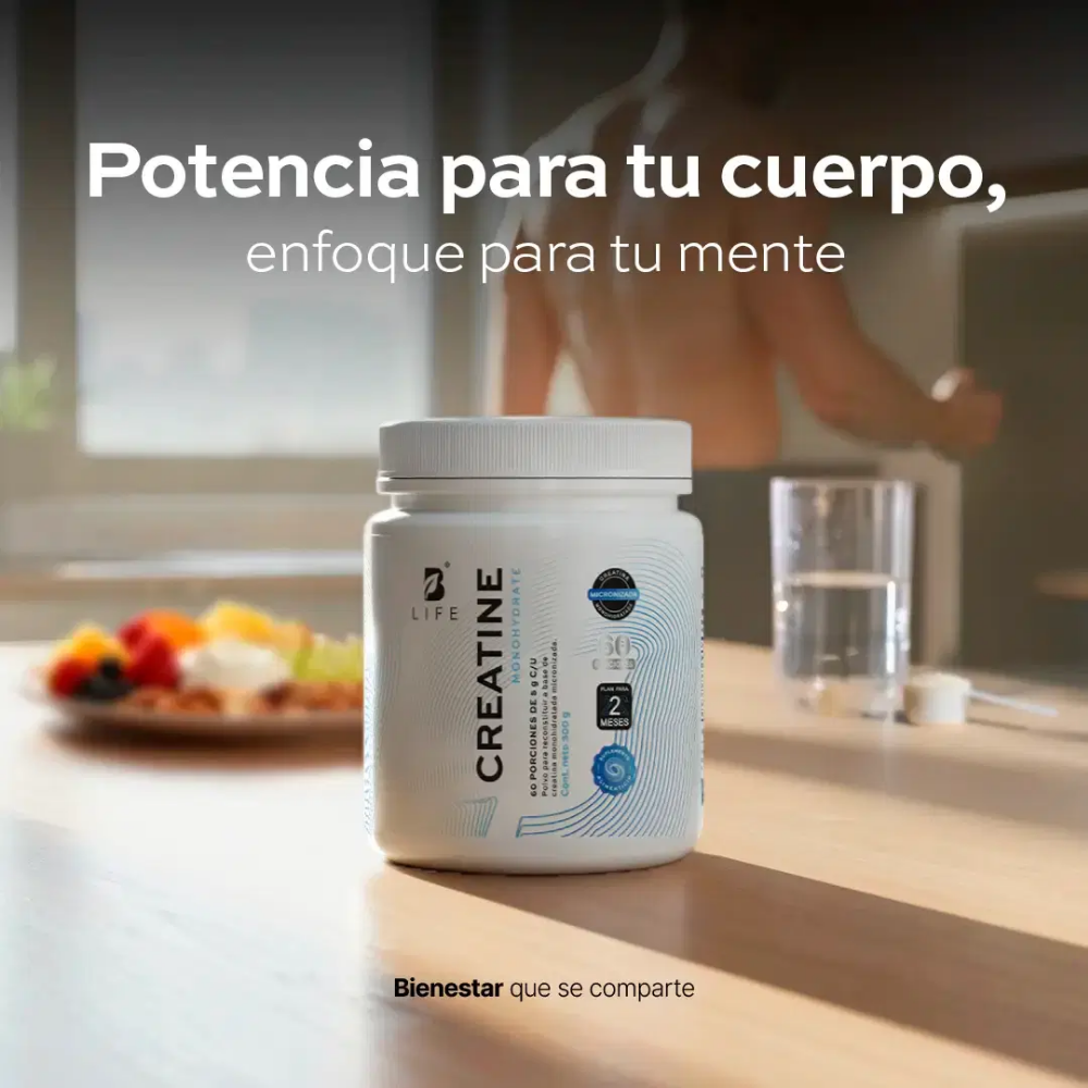 Creatine Monohydrate Polvo B Life® contiene 5000 mg de monohidrato de creatina micronizada por porción.