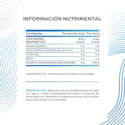 Creatine Monohydrate Polvo B Life® contiene 5000 mg de monohidrato de creatina micronizada por porción.