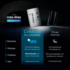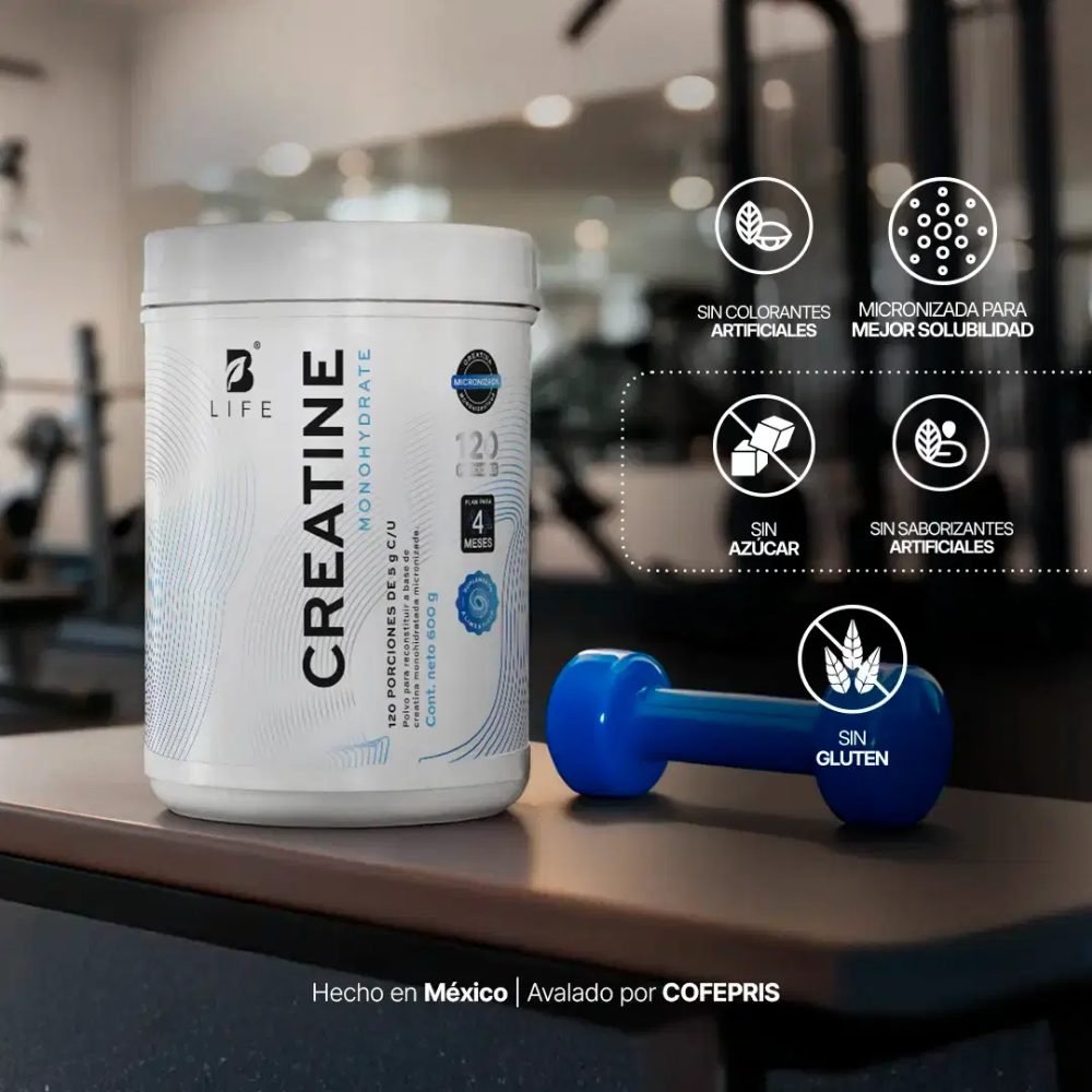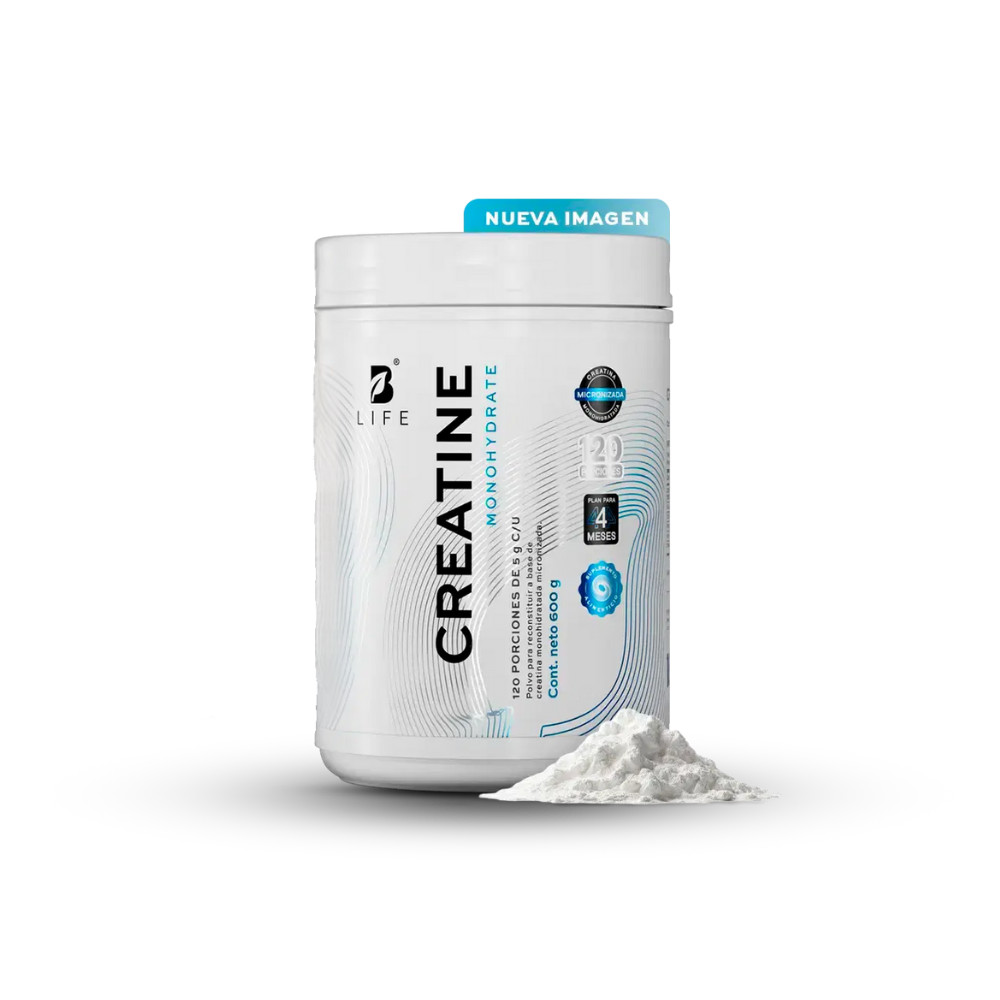 Creatine Monohydrate Polvo B Life® contiene 5000 mg de monohidrato de creatina micronizada por porción.