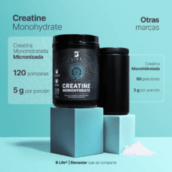 ¡Disfruta Creatine Monohydrate Polvo B Life®! Nuestra increíble concentración ofrece 5000 mg de monohidrato de creatina micronizada por porción, a diferencia de otras opciones que brindan solo 3000 mg.