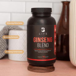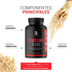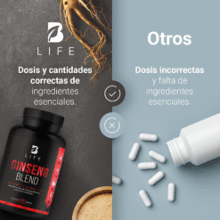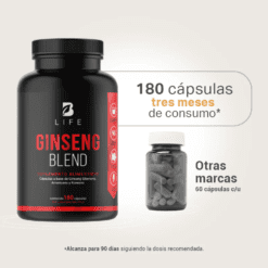 ¡Prolonga tu bienestar con Ginseng Blend B Life®! Cada cápsula de 500 mg contiene una extraordinaria mezcla de tres variedades de Ginseng: Siberiano, Americano y Koreano, brindando una amplia variedad de compuestos activos, potenciando sus beneficios. Esto contrasta con otras formulaciones que no cuentan con esta combinación.