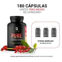 ¡Pure Berberine B Life®, una fórmula 100% natural! Cada porción ofrece una concentración máxima de 1000 mg de Berberina HCI Pura, superando otras presentaciones que solo contienen 400 mg de este valioso compuesto para tu bienestar.