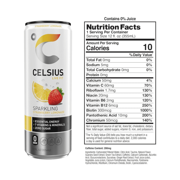 ¡Abre los refrescantes sabores del verano y energiza tu día con limonada de fresa espumosa! Elaborado con ingredientes clínicamente probados, este sabor carbonatado de CELSIUS tiene el equilibrio perfecto entre sabor y energía que sirve como un increíble estimulante para estilos de vida activos.