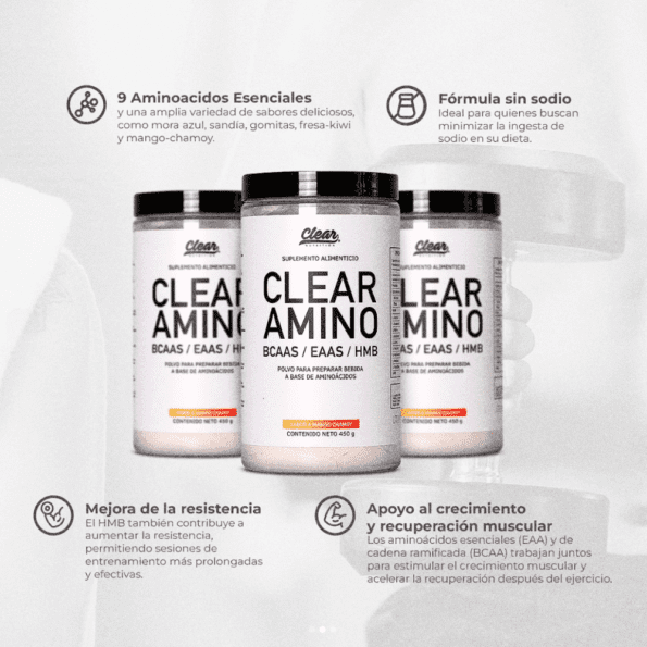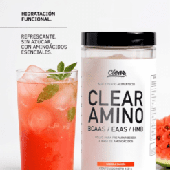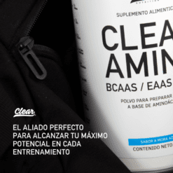 Clear Amino está diseñado para quienes buscan alcanzar su forma física ideal. Los aminoácidos esenciales (EAA) y los aminoácidos de cadena ramificada (BCAA) trabajan en sinergia para apoyar el crecimiento y la recuperación muscular, mientras que la Glutamina favorece la regeneración tras el esfuerzo físico. El HMB complementa este poderoso conjunto, ayuda a preservar la masa muscular y a mejorar la resistencia. Esta fórmula es la elección perfecta para atletas y entusiastas del fitness dedicados a maximizar sus resultados.