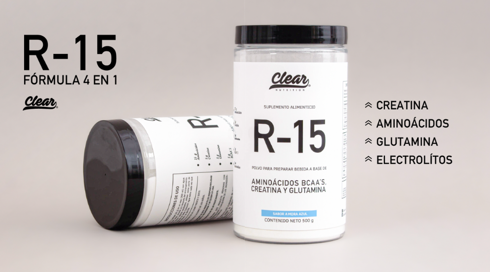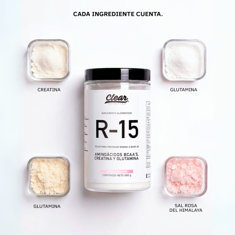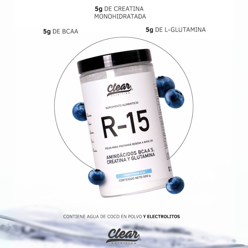Clear Nutrition | R-15 (50 serv) 500 gr | Creatina, Glutamina, Bcaas y Electrolitos