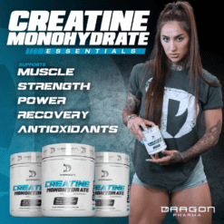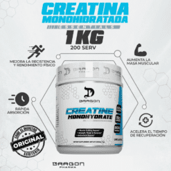 Uno de los suplementos probados más vendidos y estudiados en el mercado, la creatina ganó fama como suplemento probado en la década de 1990. El monohidrato de creatina de Dragon Pharma ayuda a aumentar la fuerza, aumenta la masa muscular y ayuda a recuperar los músculos más rápido durante el ejercicio. Cada cucharada (una porción) de monohidrato de creatina de Dragon Pharma contiene 5 gramos de monohidrato de creatina puro.
