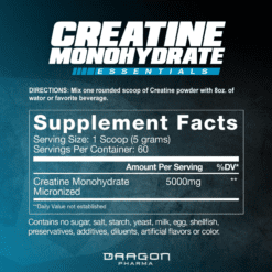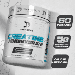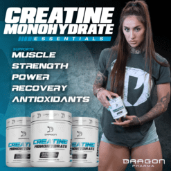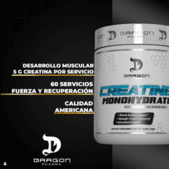 Uno de los suplementos probados más vendidos y estudiados en el mercado, la creatina ganó fama como suplemento probado en la década de 1990. El monohidrato de creatina de Dragon Pharma ayuda a aumentar la fuerza, aumenta la masa muscular y ayuda a recuperar los músculos más rápido durante el ejercicio. Cada cucharada (una porción) de monohidrato de creatina de Dragon Pharma contiene 5 gramos de monohidrato de creatina puro.