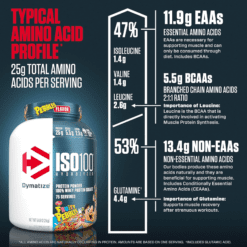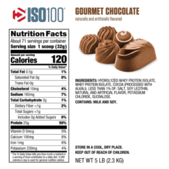 Cada porción de ISO100 contiene 120 calorías o menos, menos de 1 gramo de azúcar y 3 gramos o menos de carbohidratos. Los sabores de ISO100 son una excelente manera de consentirse, especialmente si intenta seguir ciertas dietas como la cetogénica, la baja en carbohidratos y muchas otras.