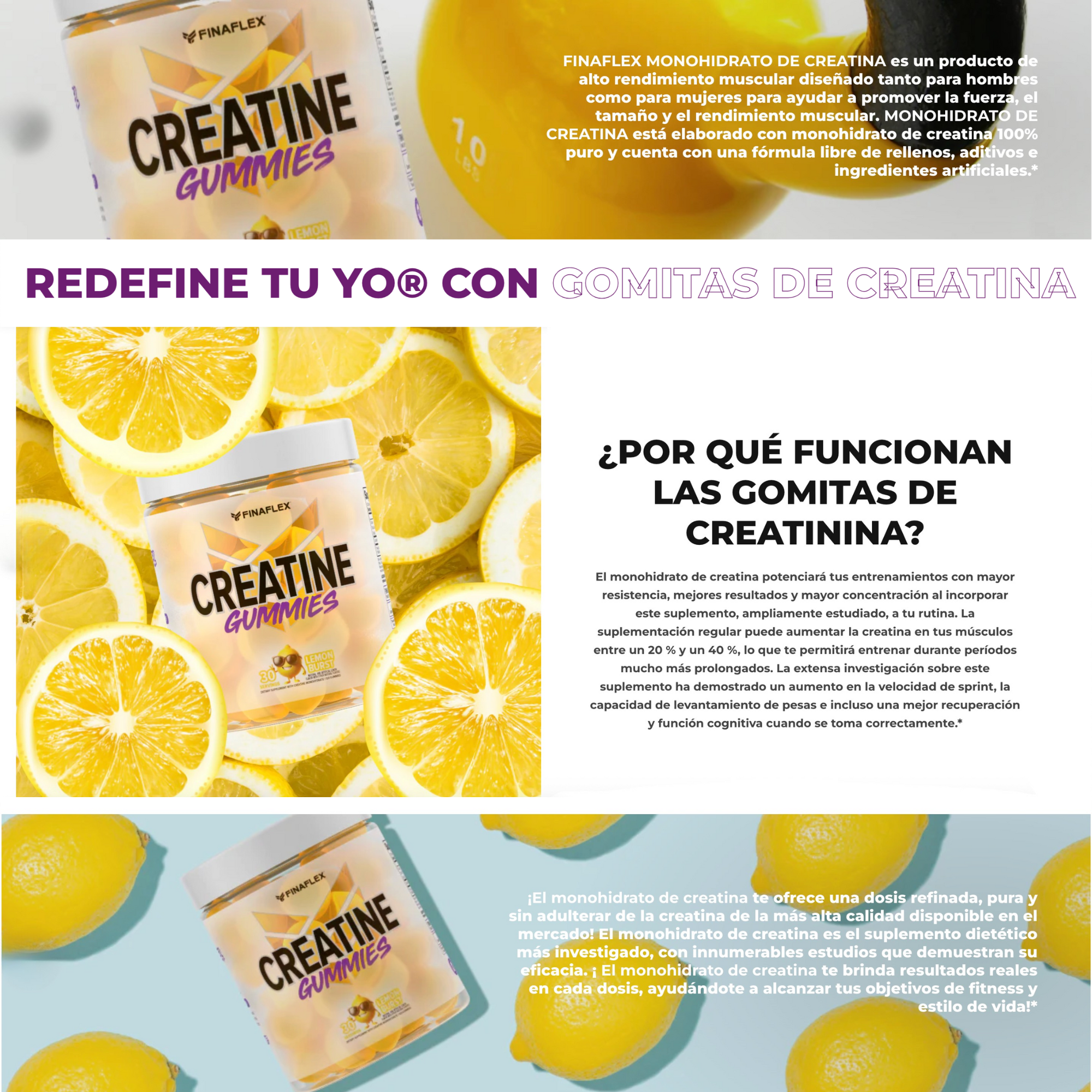 *Tenga en cuenta que, al contrario de lo que muestra la imagen del producto, las gomitas de creatina no tienen recubrimiento de azúcar.