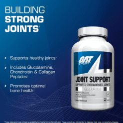 GAT Sport JOINT SUPPORT es una fórmula de primera calidad que contiene glucosamina y condroitina para ayudar a las articulaciones sobrecargadas de los atletas y culturistas que buscan alcanzar el máximo rendimiento. De hecho, Joint Support es uno de esos raros suplementos que pueden beneficiar a casi cualquier persona con problemas articulares, como en los hombros, las rodillas o la espalda. Si ese es tu caso, ¡considera probar GAT Sport JOINT SUPPORT!