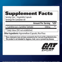 Uno de los suplementos más versátiles para los atletas que buscan mejorar el rendimiento y la resistencia atlética, GAT Sport L-CARNITINE ayuda al cuerpo a producir energía, lo que brinda apoyo para el ejercicio de resistencia y durante la recuperación de actividades de alta intensidad, como el levantamiento de pesas y el sprint. La suplementación con esta fórmula de acción rápida ayuda a maximizar las concentraciones de carnitina muscular en el gimnasio o antes de una competencia atlética.