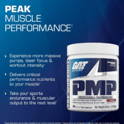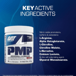PMP by GAT ofrece la próxima generación de intensos pre-entrenamientos. Lleva tu resistencia deportiva y rendimiento muscular al siguiente nivel. Experimenta bombas más masivas, enfoque láser e intensidad de entrenamiento. Una poderosa mezcla de ingredientes clave clínicamente investigados formulados para ofrecer lo último en rendimiento muscular máximo.