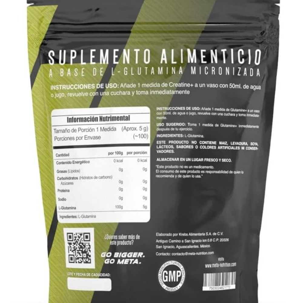 L-Glutamina Meta Nutrition es un suplemento de alta pureza diseñado para quienes buscan calidad, rendimiento y confianza en cada porción. Nuestra fórmula contiene 100% L-Glutamina pura, sin sabor, ideal para mezclar fácilmente con tus bebidas favoritas.