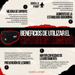 Domina tus entrenamientos con el CINTURÓN LUMBAR DE LEVANTAMIENTO DE PESAS GORILLA PUMP. Este accesorio esencial te ofrece el soporte imprescindible para mantener una postura óptima y maximizar tu desempeño en los entrenamientos más desafiantes. Diseñado con los mejores materiales y una hebilla de acero, garantiza la mayor comodidad y seguridad durante tus sesiones de levantamiento.
