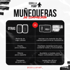 Protege y potencia tus entrenamientos con nuestras muñequeras Gorilla Pump, creadas para brindarte el soporte y la comodidad que necesitas.