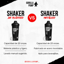 Nuestro shaker metálico Gorilla Pump es esencial para acompañarte y mantener tus bebidas frescas, mejorando tu hidratación y rendimiento.