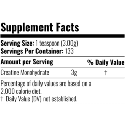 Se ha demostrado que el monohidrato de creatina es una ayuda ergogénica y anaeróbica eficaz que favorece el rendimiento muscular intenso. La suplementación con creatina puede aumentar significativamente la producción de potencia muscular y acelerar la recuperación de la molécula de fosfocreatina de alta energía, lo que ayuda a aumentar la fuerza y la resistencia contráctil durante el entrenamiento anaeróbico. Utilice este nutriente de alta energía como ayuda para su programa de nutrición suplementaria.