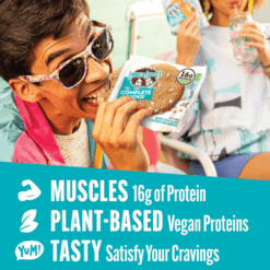 Nuestras galletas se hornean con proteínas de guisante y arroz. Combinadas, estas proteínas a base de plantas contienen los 9 aminoácidos esenciales, son fácilmente digeribles y tienen un bajo potencial de respuestas alérgicas. No solo se reduce tu hambre, sino que también tienes la energía para alimentar tu diversión!
