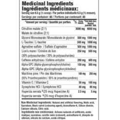 Alpha-GPC – (L-alfa-glicerilfosforilcolina o alfoscerato de colina) apoya la función cognitiva. Aumenta la acetilcolina en el cerebro, un potente neurotransmisor responsable del control muscular, la memoria y la concentración.