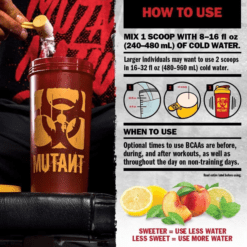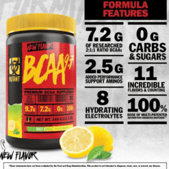 Mutant BCAA 9.7 brinda 9.7 Gr de Aminoácidos en 1 sola cucharada concentrada. Nuestros BCAAs están en el radio preferido de 2:1:1 e instantáneos para una solubilidad superior; con una combinación de Aminos micronizados; y finalmente fortificado con Magnesio para ayudar a contribuir a la síntesis de Proteínas.