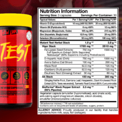 Mutant Test combina ingredientes en forma de fórmulas patentadas como MacaTest™, TestoSurge™, BioPerine® y Zinc que nos ayudarán a potenciar la fuerza y la potencia muscular para así conseguir una mayor ganancia de masa muscular.