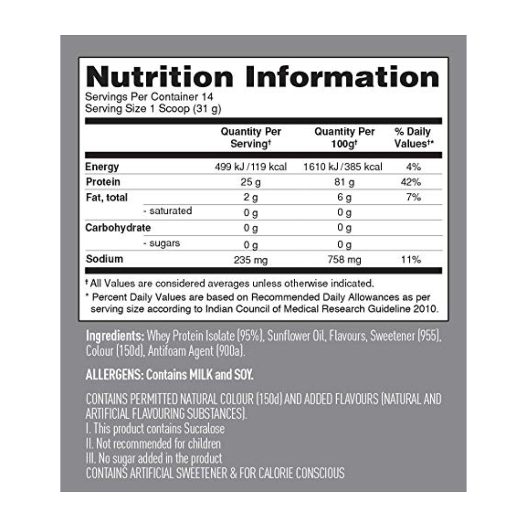 Isopure Zero Carb con 25 gramos de aislado de proteína de suero de leche pura al 100%; vitaminas y minerales agregados para ayudar a rendir al máximo. Está hecho con glutamina natural, sin gluten, lactosa o rellenos.