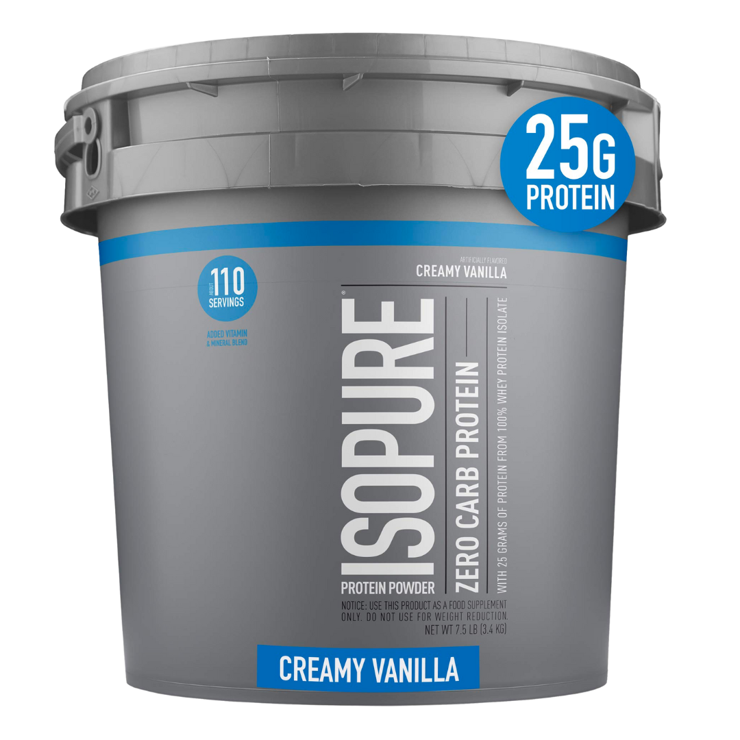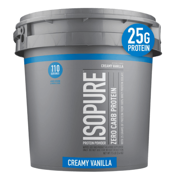Isopure Zero Carb con 25 gramos de aislado de proteína de suero de leche pura al 100%; vitaminas y minerales agregados para ayudar a rendir al máximo. Está hecho con glutamina natural, sin gluten, lactosa o rellenos.