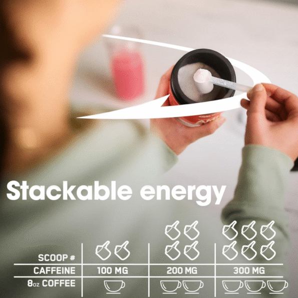 Consigue más por porción con 0.18 oz de aminoácidos para apoyar la recuperación muscular y 100 mg de cafeína de fuentes naturales.