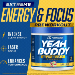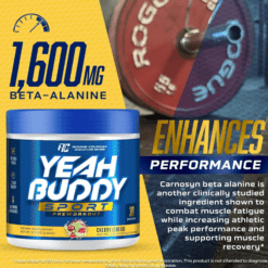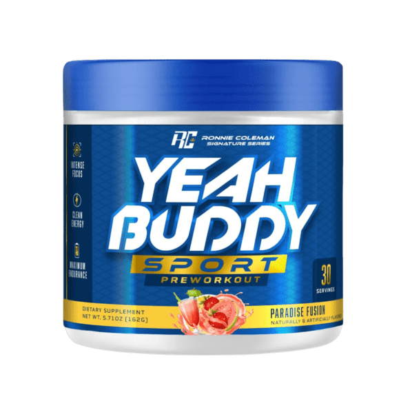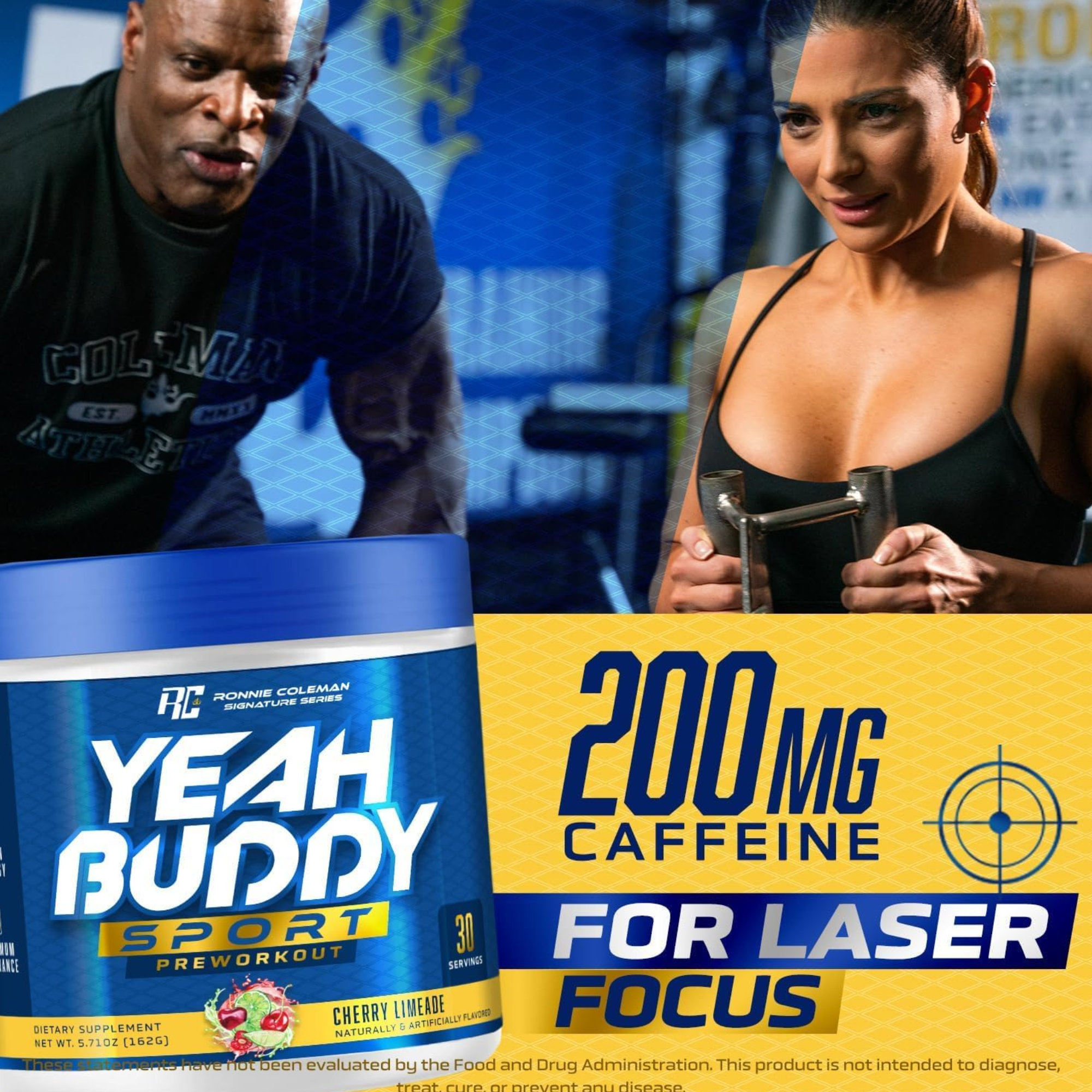 - Yeah Buddy Sport: Ronnie Coleman Yeah Buddy Pre Workout ahora está reforzado con el ingrediente más nuevo en energía y enfoque, Dinamita. Hemos combinado esto con TeaCrine, conocido por ayudar con energía sostenida, claridad y mejora del estado de ánimo. El resultado es una experiencia de energía y enfoque sin igual que nunca antes habías sentido. Solo una cucharada es todo lo que necesitas para darte la bomba antes del entrenamiento que estás buscando para aumentar la energía y el rendimiento.