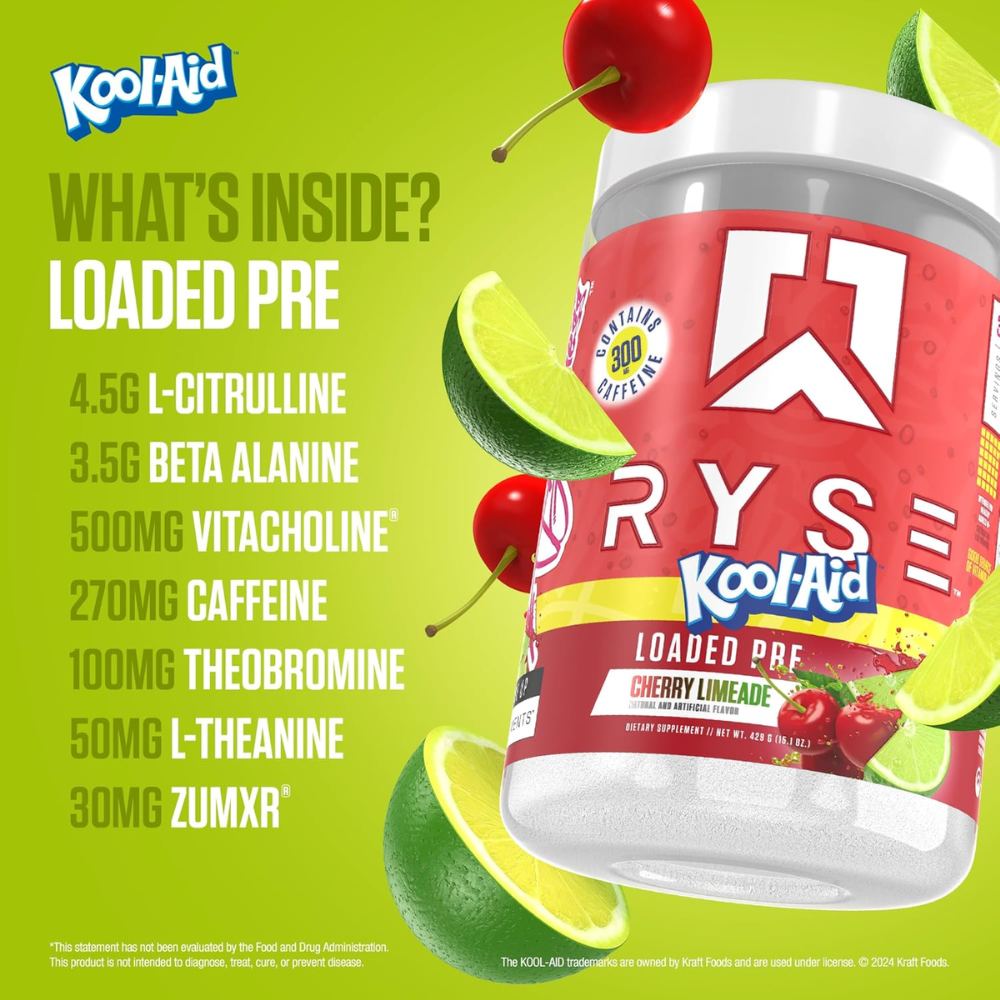 Ryse Loaded Pre | Sabor Kool-Aid Cherry Limeade | 30 serv