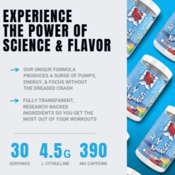 ¡Experimenta el poder de la ciencia y el sabor combinados! RYSE Loaded Pre-Workout utiliza dosis clínicas de ingredientes con respaldo científico para asegurarte de que aproveches al máximo tus entrenamientos. Nuestra fórmula única te proporciona un impulso de energía, concentración y explosividad en el gimnasio. Todo esto sin el temido bajón posterior.