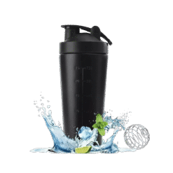 Coctelera de proteínas deportivas de alta capacidad de 25 onzas con marcas graduadas para que sepas cuánta agua necesitas beber cada día.