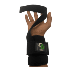 Par de muñequeras de neopreno envolventes con tira integrada para soporte en muñeca y agarre de barra con peso.