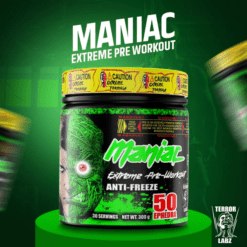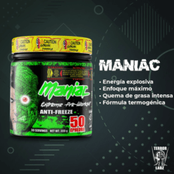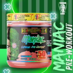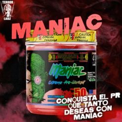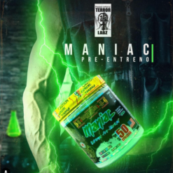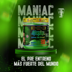 MANIAC es un suplemento de preentrenamiento con alto contenido de estimulación extrema que está prácticamente prohibido y es ilegal porque es el mejor suplemento de preentrenamiento para lograr energía, concentración y congestión extremas. Maniac te ayudará a lograr un récord personal que nunca creíste posible. Maniac te ayudará a conquistar cualquier objetivo que te propongas para el día. Te ayudará a aguantar toda la noche.