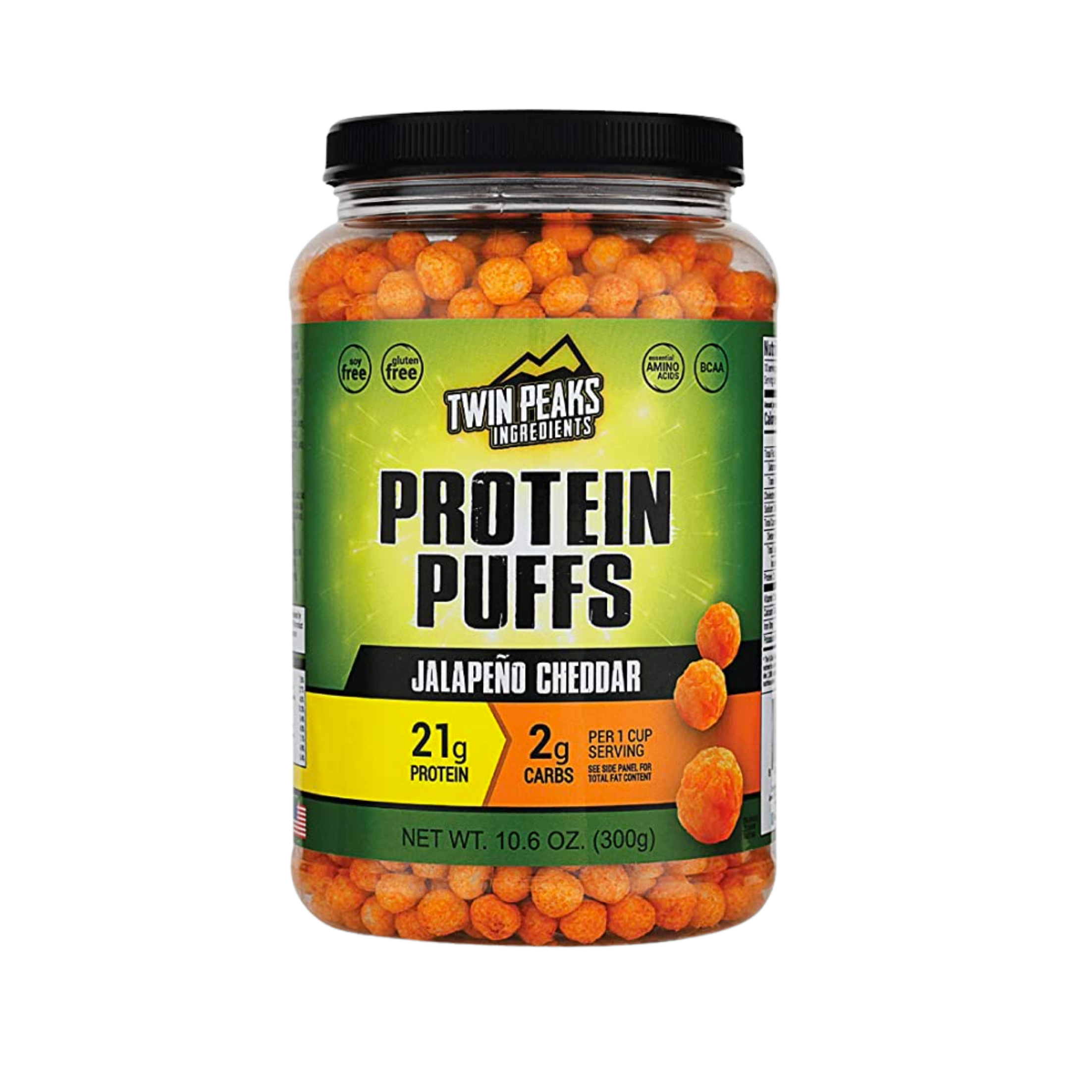 - Alimento real. Gran proteína: ya no tienes que recurrir a polvo de proteínas para cumplir con tus objetivos dietéticos; nuestros puffs son alimentos reales con un gran sabor. Una taza tiene 21 g de proteína con 4,2 g de BCAA y 4,5 g de ácido glutámico.