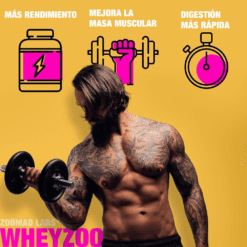 Aportarle a tu cuerpo nutrientes de alta calidad todos los días es crucial para desarrollar y mantener los músculos. Los músculos necesitan “buena comida” igual que nosotros. Mima tus músculos y tus papilas gustativas con WheyZoo, completa tu desayuno con 30g de WheyZoo, perfecto para sustituir o complementar las comidas durante los periodos de definición muscular, aportando nutrientes de alta calidad con un aporte calórico prácticamente nulo.